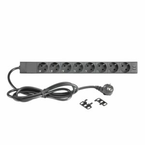 Adam Hall 19″ Parts 87471USB – Base de enchufes con 8 tomas Schuko con doble puerto USB de Carga e interruptor encendido / apagado para montaje en rack 19″
