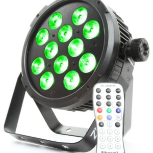BeamZ – FOCO PAR PLANO 37 – 12x 4W 4-en-1 LEDs Mezcla de colores RGBW Shows pre programados 4 o 8 canales DMX DMX o autonomo Ritmo de la musica con ajuste de sensibilidad Auto con ajuste de velocidad