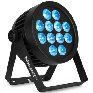 Beamz Pro – BWA532 – FOCO PAR ALUMINIO IP65 LED 12X 12W 4-EN-1, Mezcla de color RGBW 25x preset de colores Temperatura color 2700, 3200, 4300, 5600, 6500, 8000K 9x Shows pre-programados con ajuste de velocidad Dimmer electronico: 0 – 100%