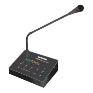 L-TRONIK – MX-400M – Pupitre para MX-4120. Estación de llamadas de 4 zonas para etapas de potencia . El usuario puede seleccionar cualquiera de las 4 zonas o todas