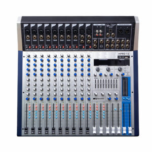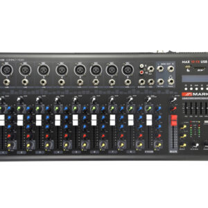 MARK – MPRO 12 – Mezclador analógico. 8 mono + 2 st. 4 Aux. Interface PC. USB/Bluetooth. Función Grabación. 99 efectos. Phantom +48 V.