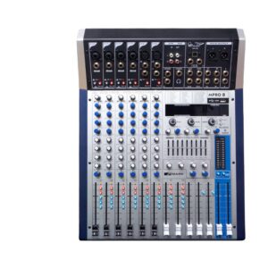 MARK – MPRO 8 – Mezclador analógico. 4 mono + 2 st. 4 Aux. Interface PC. USB/Bluetooth. Función Grabación. 99 efectos. Phantom +48 V.