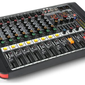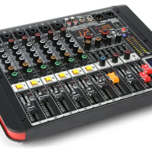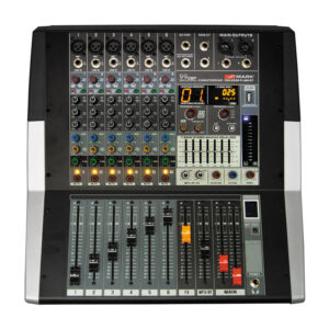 Power dynamics – PDM-S804A MEZCLADOR AMPLIFICADO DE ESCENARIO 8 CANALES, 2 X 350 W. RMS, Incluye mute y solo por canal, reproductor MP3 por USB con display digital y receptor BT para audio streaming.