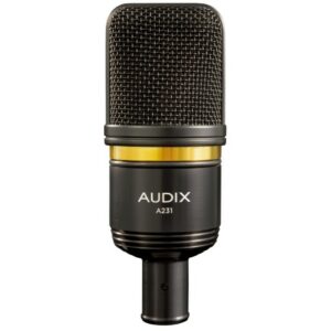 AUDIX – A231 – Micrófono de condensador, Polar Cardiode, de gran diafragma construido para el usuario de estudio más exigente. Con su cápsula de verdadero condensador» con polarización externa y su circuito de bajo ruido, el A231 es capaz de capturar los matices de la voz humana, así como los ricos sobretonos de los instrumentos acústicos, con una calidez natural y un detalle impresionante.
