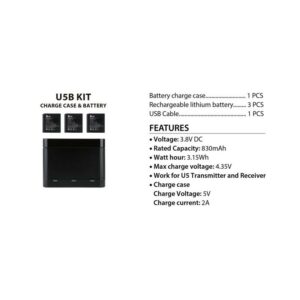 XVIVE – U5C – Pack conteniendo tres baterías recargables y una estación de carga mediente USB, para los emisores y transmisores de la serie U5