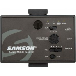 SAMSON WIRELESS SYSTEMS – GO MIC MOBILE RECEIVER ONLY- Sistema micrófono inalámbrico para teléfonos móviles, Receptor para sistemas inalámbrico Go Mic Mobile.Alcance 30m. 6 horas de autonomía. Batería de Litio.