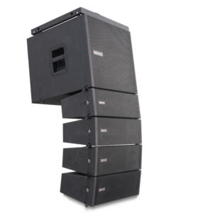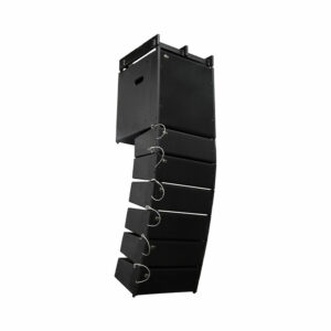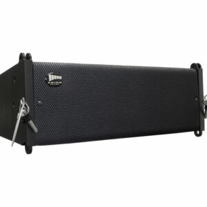 dB Technologies – DVA T8 – Módulo Line array activo de tres vías equipado con woofer de neodimio de 8” bass réflex, 1 medio de 6,5” bobina 2, con trompeta y dotado de corrector de fase, y 2 drivers de 1” con trompeta de directividad constante.