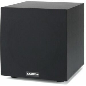 SAMSON MEDIAONE 10S – Subwoofer activo de estudio 10″. Potencia de 100W. Puerto reflex inferior. Entradas y salidas RCA. Entradas y salidas para altavoz (cable pelado) para usar con sistemas estéreo.