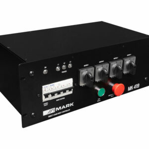 Mark – MK 419 – Control para 4 motores trifásicos de 16 A.dispositivo en formato rack 19″ que permite controlar polipastos trifásicos de 16A. Cada polipasto tiene su propio control con parada, giro normal e inversión. Los polipastos pueden sincronizarse marcando la dirección de giro y ponerse en marcha desde un botón único.