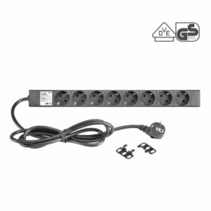 Adam Hall 19″ Parts, 87471 T – Regleta distribuidor de corriente para rack 19″, 8 tomas de corriente conectados a tierra tipo F en la parte trasera de un gabinete de aluminio