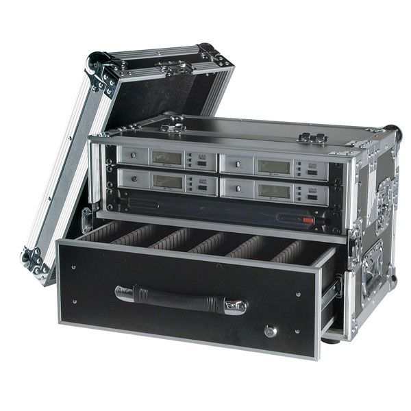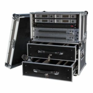 Showgear WIRELESS MICROPHONE CASE 2 – Flight Case de 6U de 19″ y con dos cajones para equipos y accesorios inalámbricos.