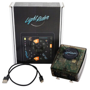 LIGHT RIDER WIFI 512CH – Interfaz Wifi DMX de 512 canales, control DMX basado en tableta, aplicación gratuita «Light Rider» para iOS, Android y Amazon Fire Tablet, compatible con el popular software de DJ, opción de almacenamiento para presets, la velocidad y el brillo se pueden ajustar individualmente.
