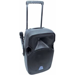 OQAN – QLS-12S TRAVEL – Altavoz mutlifunción en formato trolley con batería recargable y 2 micrófonos inalámbricos UHF. 300W de potencia. Batería recargable. Reproductor MP3 Bluetooth, tarjeta SD y USB. FM Radio. Mando a distancia. 2 Micrófonos inalámbricos UHF incluidos.