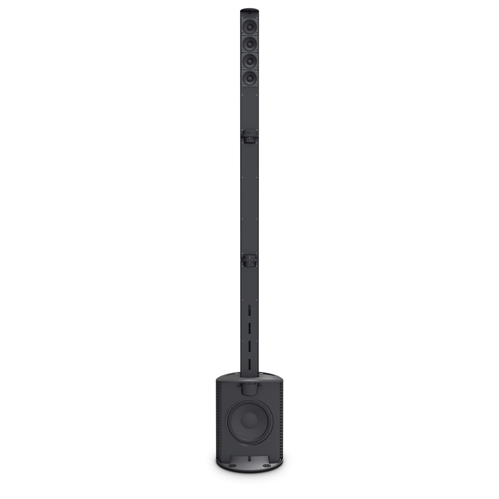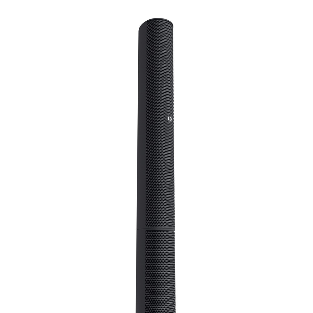 Las entradas de micrófono, instrumento y señal de línea, además del streaming estéreo por Bluetooth®, convierten al MAUI® 5 GO 100 en el equipo ideal para músicos callejeros y para reproducción de voz en eventos privados y de empresa, así como en cualquier aplicación sin acceso a una toma de corriente. Gracias a su peso reducido de solo 12,4 kg y su estructura en cuatro piezas, resulta extremadamente fácil de transportar, y con su conector multipin especial se monta e instala en unos momentos. La disposición en array lineal de los motores logra un alcance extremadamente alto. Además, su amplia cobertura y excepcional resistencia a los acoples hacen innecesario el uso de monitores adicionales. Con su potencia máxima de 800 W, el MAUI® 5 GO 100 es el sistema de PA a batería con mayor volumen y mejor sonido del mercado; puede sonorizar sin problemas aforos de más de 100 personas. Para ofrecer una calidad de sonido inigualable en todas las aplicaciones, este equipo de columna cuenta con el procesador de señal LECC de LD Systems, con limitador multibanda, ecualizador, compresor y crossover. El mezclador integrado de 4 canales ofrece controles de volumen independientes para los canales de entrada, suma y subwoofer, además de un refuerzo variable de agudos para ajustar el sonido de forma rápida y equilibrada.