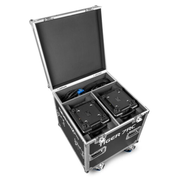 Cód. 152.027 BeamZ Pro – Tiger 7RC 230W – Cabeza Móvil Beam 2uds en Flightcase El nuevo Tiger 7RC es una cabeza móvil compacta que genera una impresionante salida de luz con su lámpara de descarga de alta intensidad 7R 230W. Esta versátil cabeza móvil presenta una amplia gama de efectos, que incluyen mezcla de colores, un efecto de escarcha, varios gobos y un prisma, lo que brinda a los usuarios un control preciso sobre sus diseños de iluminación. El Tiger 7RC incluye una rueda de gobos equipada con 15 patrones más una posición abierta y una rueda de color…
