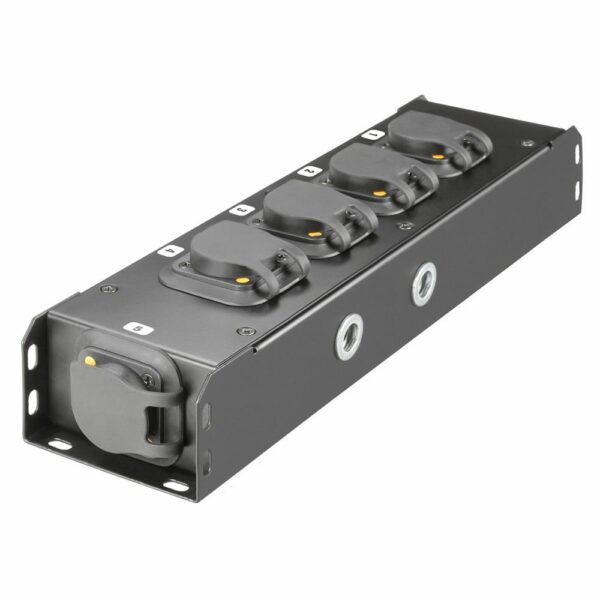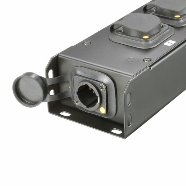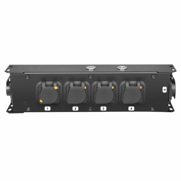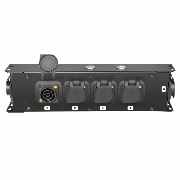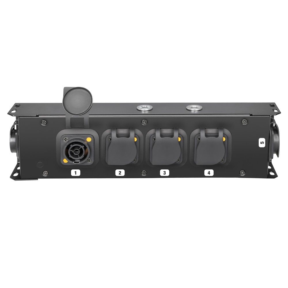 Diseñado para una fácil distribución de potencia en escenarios, trusses y engranajes, el PROPORT 4TT presenta un conector de entrada amarillo y negro
