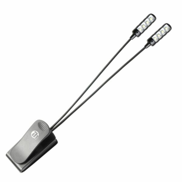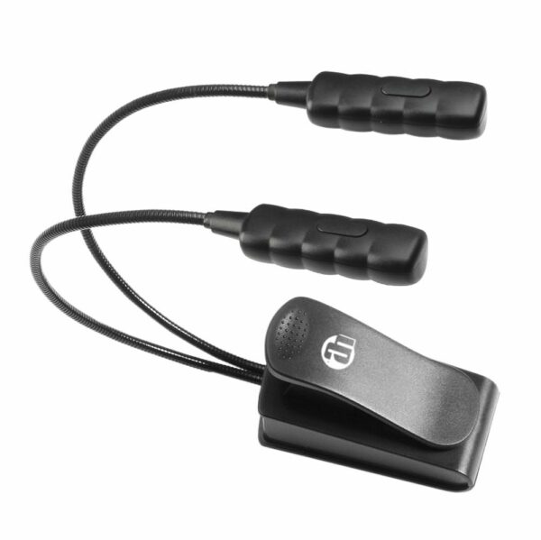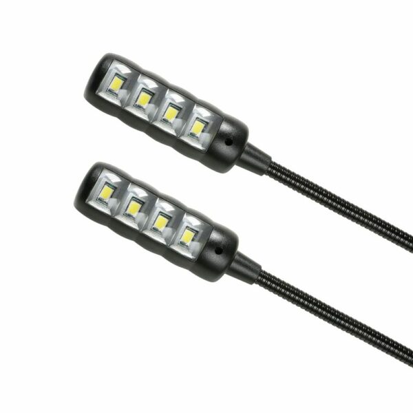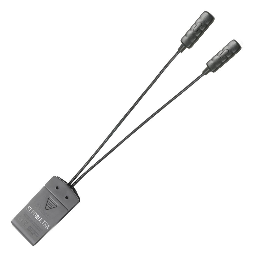 La SLED 2 ULTRA es una lámpara de pinza de color negro mate con dos flexos que están provistos cada uno de dos LED COB blancos. Los flexos de 27 cm de largo tienen un mango muy flexible y disponen de 3 niveles de intensidad ajustables por separado.