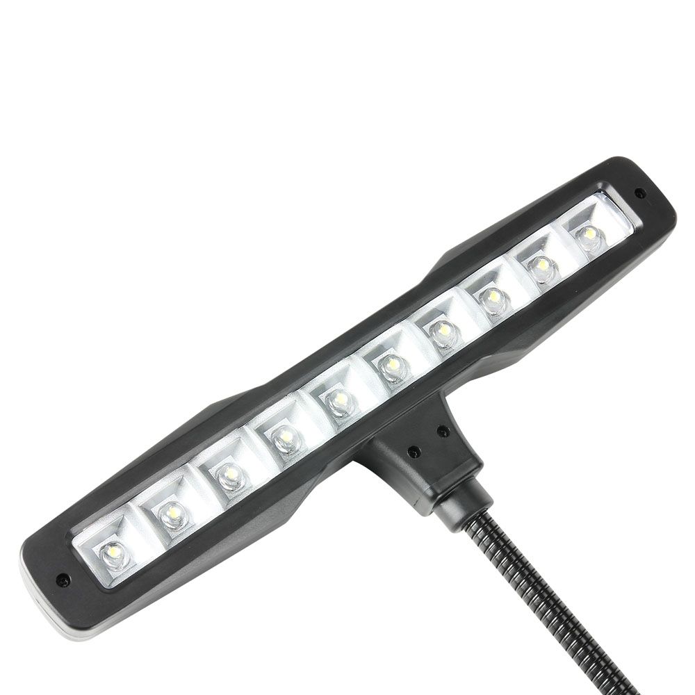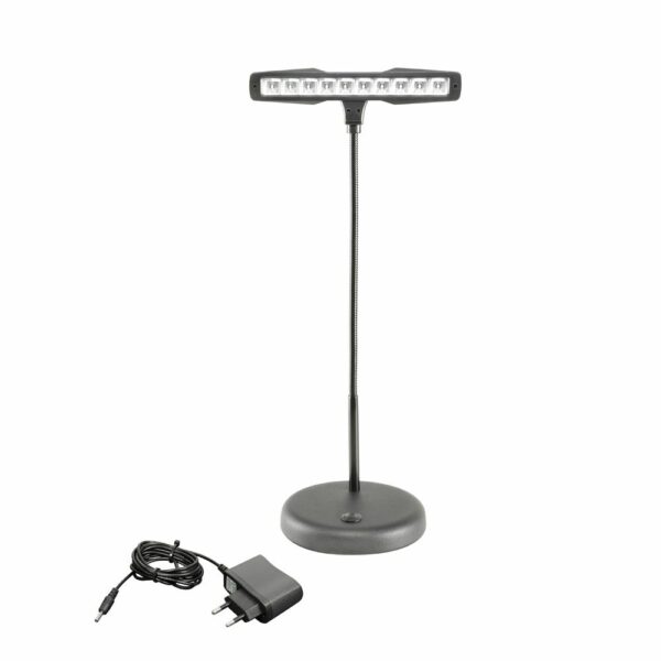 SLEDPL10 es una práctica y compacta lámpara para piano y atril de partituras con diseño protegido. Los 10 LED potentes y eficaces tienen 2 niveles de brillo seleccionables. Además, se puede variar la orientación del haz luminoso gracias a su cuello flexible de 380 mm de longitud. La pesada base de 1,3 kg ofrece una gran estabilidad. Incluye un adaptador de corriente con un cable de 3 m de longitud.