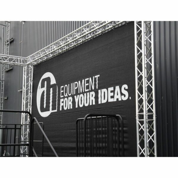 Cód. 0157X56B Adam Hall Accessories, 0157X56W – Gasa, Tul tipo 202 de 5×6 m, con ojales, negro El tul 202 es una tela de malla de polietileno con una trama abierta, permeable al viento y al sonido, de opacidad intermedia, que se utiliza en la fabricación de telones, cortinas y pantallas para escenarios y eventos, stands de ferias y en muchas otras aplicaciones. El material duradero y resistente a la rotura se vende por metros, tiene un ancho de 3 m, está confeccionado con ojales y un dobladillo de varios tamaños y está disponible en blanco o negro. El tul 202 es…