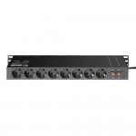Cód. 874716 Adam Hall 19 «Parts, 874716 – Base de enchufes Schuko para rack de 19» de 1 U y con 2 x 8 tomas 250 V, máx. 16 A 2 x 8 tomas a 45° con conexión a tierra Interruptores independientes para el frontal y para el panel posterior Protección contra sobrecarga