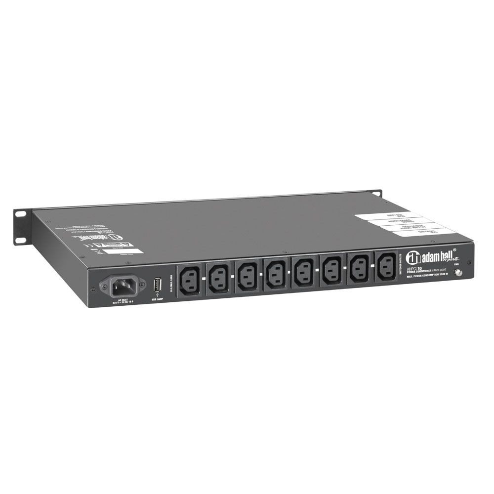 Además de una alimentación centralizada para racks y equipos de instalación fija, el distribuidor AH Power Conditioner de 19″ ofrece una protección eficaz contra la sobretensión y los picos de tensión, con un tiempo de respuesta de tan solo 1 ns. Los filtros de alta frecuencia garantizan una alta inmunidad al ruido y evitan interferencias en los dispositivos conectados. Las 8 tomas IEC hembra del panel posterior se activan por medio de un interruptor grande con LED de estado incorporado, y la parte frontal del distribuidor AH Power Conditioner dispone de otra toma IEC no conmutada y de un interruptor automático de 10 A que se rearma fácilmente. La robusta construcción y la sólida carcasa de acero de 1 U de altura garantizan un funcionamiento fiable y continuo en aplicaciones tanto fijas como móviles. El distribuidor AH PCL 10 cuenta además con dos luces para rack extraíbles, con 5 LEDs, un atenuador y encendido/apagado automáticos, y también de un flexo LED desmontable con un conector USB para iluminar la parte posterior del rack. Todas los distribuidores AH Power Conditioner se suministran con cuatro cables eléctricos IEC.