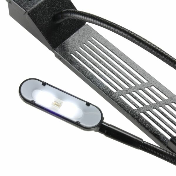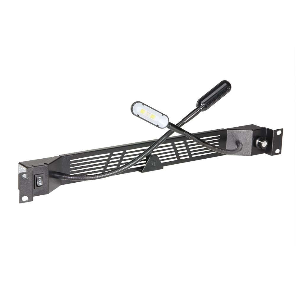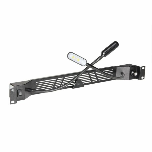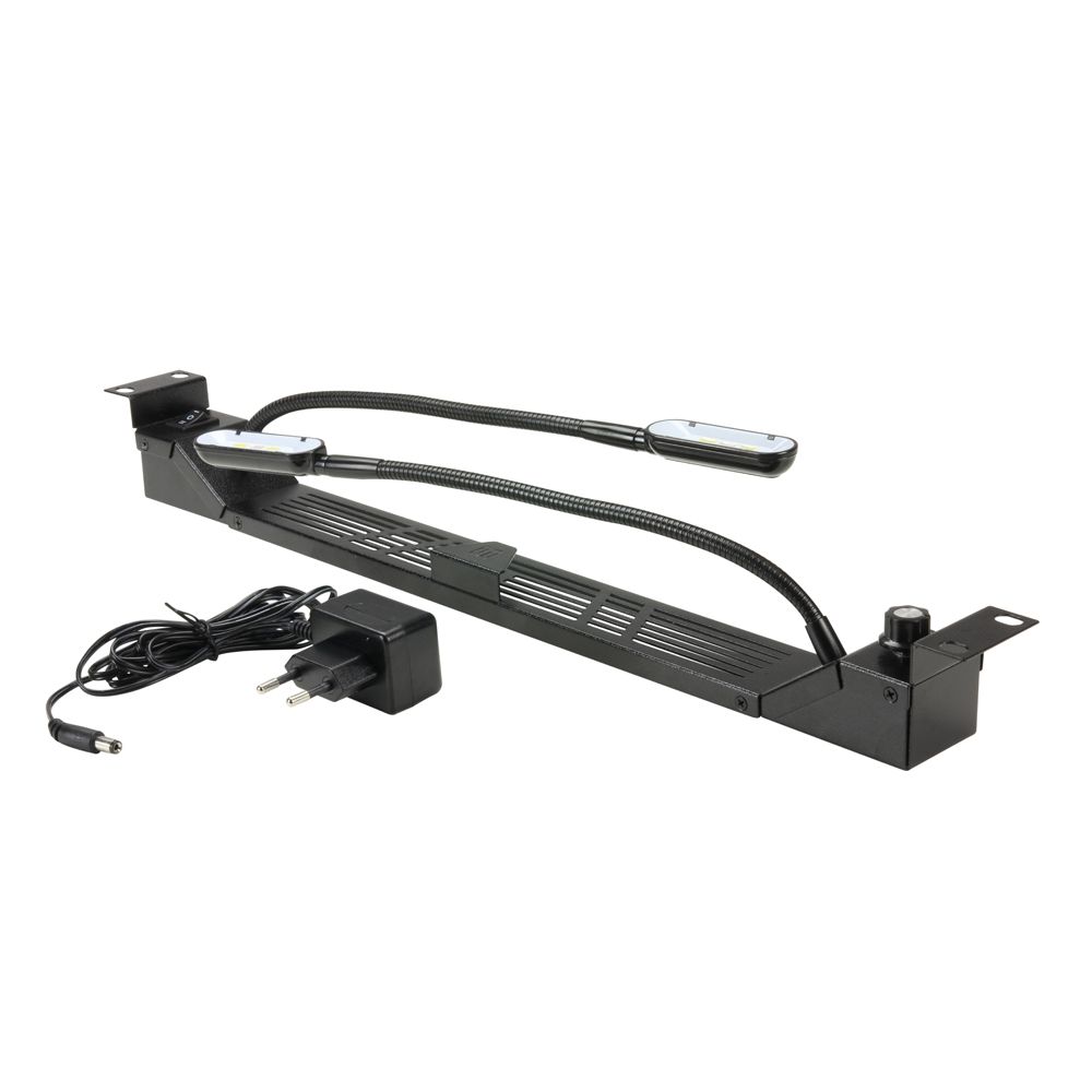 El 87463 Ultra es un panel de iluminación LED COB para rack de 1 U de altura, con atenuador de tres posiciones y memorización del ajuste de atenuación. Las dos lámparas de flexo están equipadas con LED COB blanco frío y su mango es muy flexible. El 87463 Ultra se puede montar en el panel frontal o posterior del rack y se suministra con un adaptador de corriente de 12 VDC para la alimentación eléctrica.