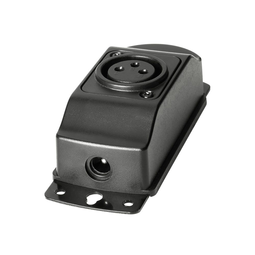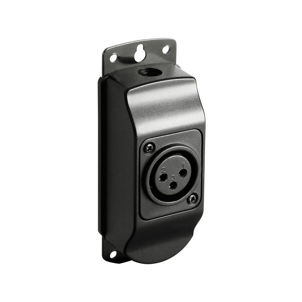 La SLED 1 B XLR 3 es una base para lámpara flexo, de plástico, de color negro y con placa de montaje de acero. Se compone de un conector XLR hembra de chasis de 3 pines (los pines 1 y 3 están conectados a masa y el pin 2 tiene la tensión de 12 voltios). Se suministra con un adaptador de corriente.