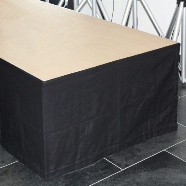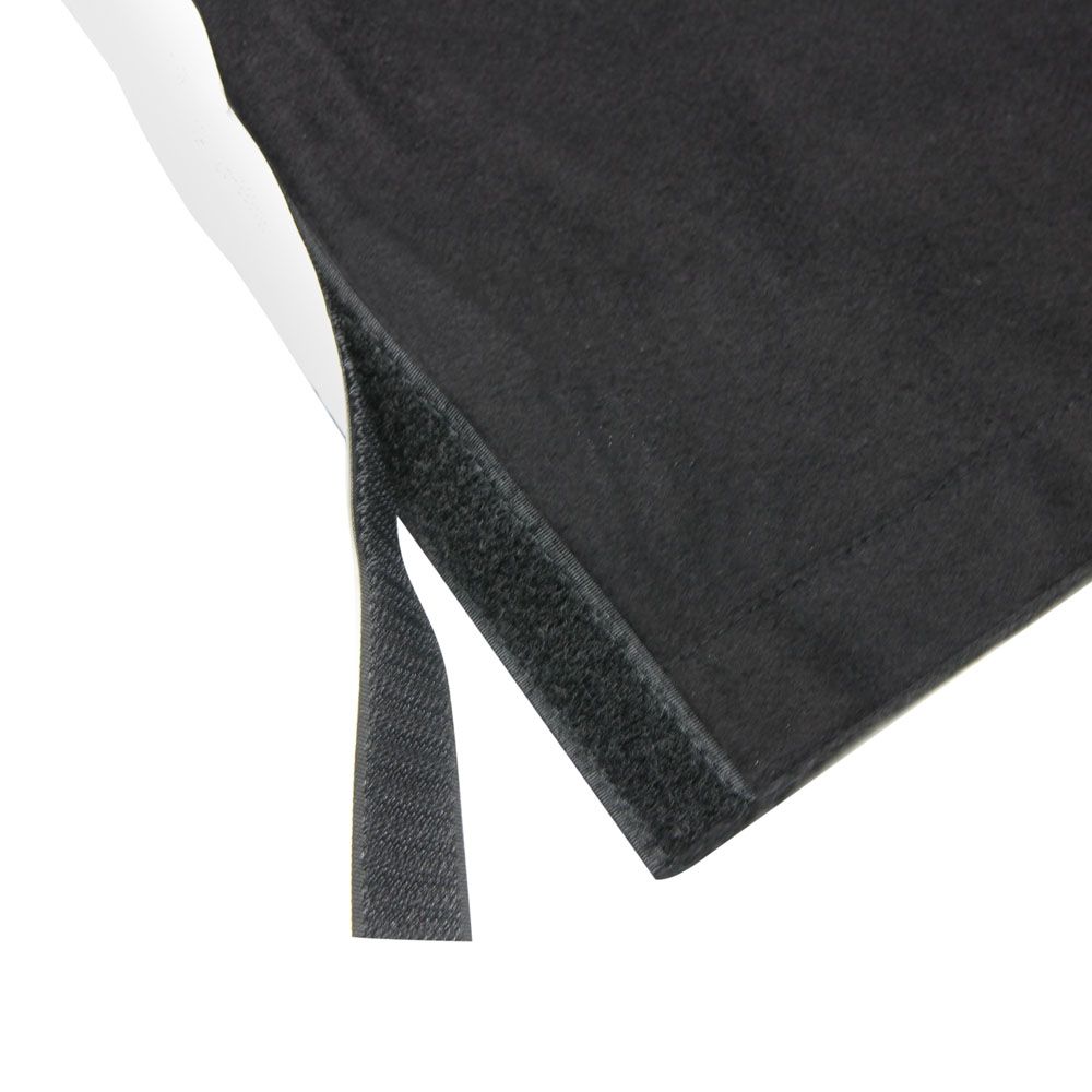 Adam Hall Accessories, 0153X208 – Tela B1, faldón para escenario con Velcro 2 x 0,8 m Tela moltón opaca de color negro tratada con retardante de llama (B1 según DIN 4102) y con un gramaje de 300 gramos. La tela está provista de una cinta velcro autoadhesiva, lo que permite fijarla fácilmente en plataformas o estructuras similares y también despegarla en cualquier momento. Cinta de bucles cosida con terminación de cinta de velcro Refuerzos izquierdo y derecho Ribete inferior de 5 cm con laterales abiertos