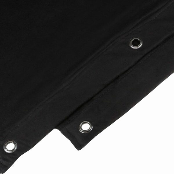 Adam Hall Accessories, 0151X36 – Tela decorativa B1 con ojales niquelados y dobladillo 3×6 m, color negro FABRICADO EN ALEMANIA.Tela decorativa de color negro tratada con retardante de llama y con un gramaje de 160 gramos, para utilizar como cortina, telón de fondo o decoración. La tela está provista en un lateral de ojales cada 25 centímetros y una cinta de refuerzo adicional, lo que permite montarla tanto tensada como en pliegues, de forma rápida y segura. Los ojales son niquelados e inoxidables y de 20 mm de diámetro. Los bordes están rematados con un dobladillo, excepto el inferior para así…