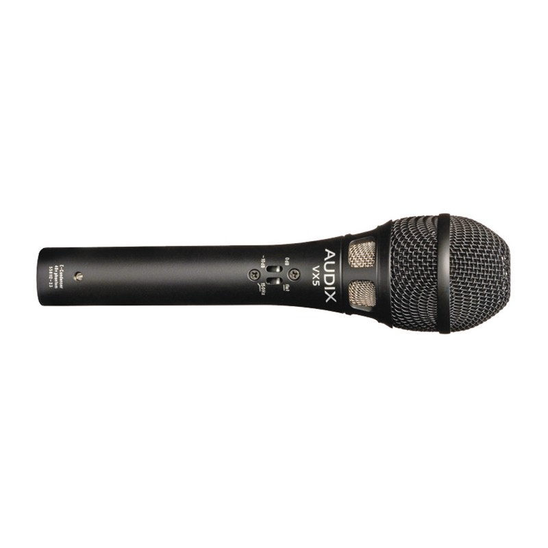 Cód. 004842 AUDIX VX5 Micrófono condensador de electret cardioide , Aplicación para voces en directo o instrumentos FICHA TÉCNICA Micrófono condensador de electret cardioide. Aplicación para voces en directo o instrumentos Patrón polar: cardioide. Respuesta en frecuencia: 40Hz-20kHz Interruptor Pad -10dB y bass roll-off Impedancia: 150 Ohm Atenuación fuera de eje: >20dBSPL Máx: 140dB Sensibilidad: 5mV/Pa. Power phantom 9-52V. Incluye clip y funda.