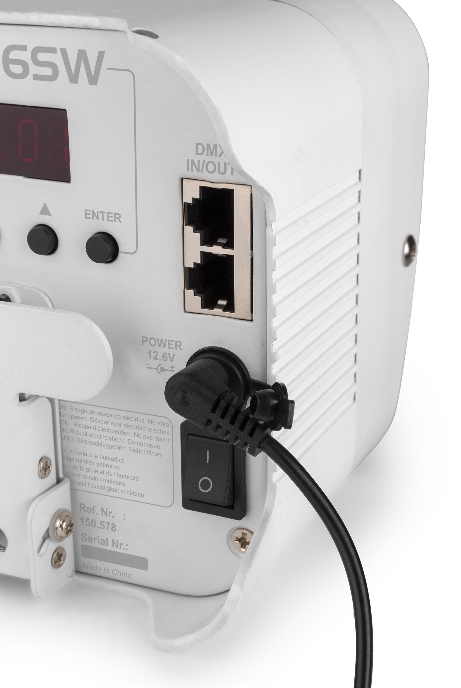 Cód. 150.578 BeamZ – BBP96SW FOCO PAR CON BATERIA 6X 12W WDMX, Led 6x 12W 6-en-1 RGBAW-UV Receptor DMX inalambrico integrado Pie integrado ajustable para posicionamiento en angulo Hasta 9 horas de trabajo (dependiendo de la intensidad) Recarga rapida en solo 3 horas DMX y Autonomo Descripción El BBP96SW es un foco PAR operado por bateria ideal para utilizar como foco para iluminacion hacia arriba, equipado con 6x 12W 6 en 1 LED. El BBP96SW incluye bateria de 9.6Ah que permite un maximo de trabajo de 9 horas a plena carga. Su pie ajustable puede fijarse en distintos angulos para colocacion…