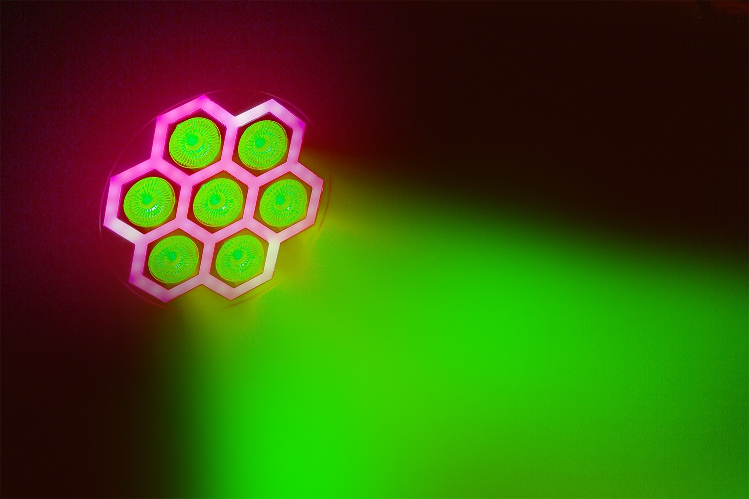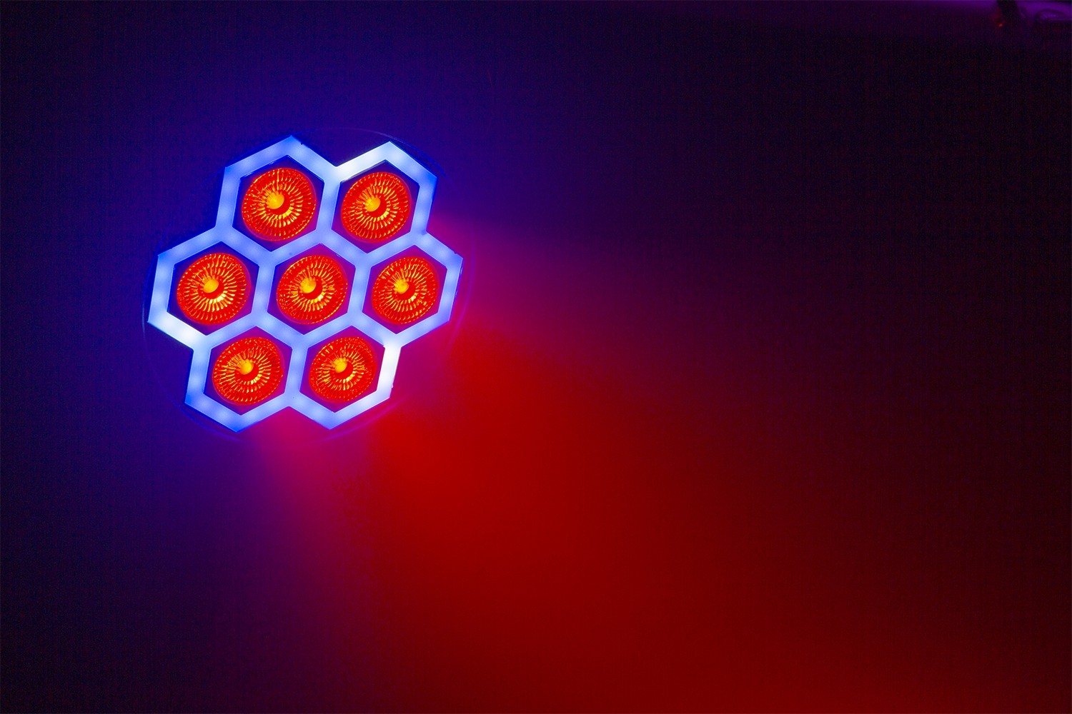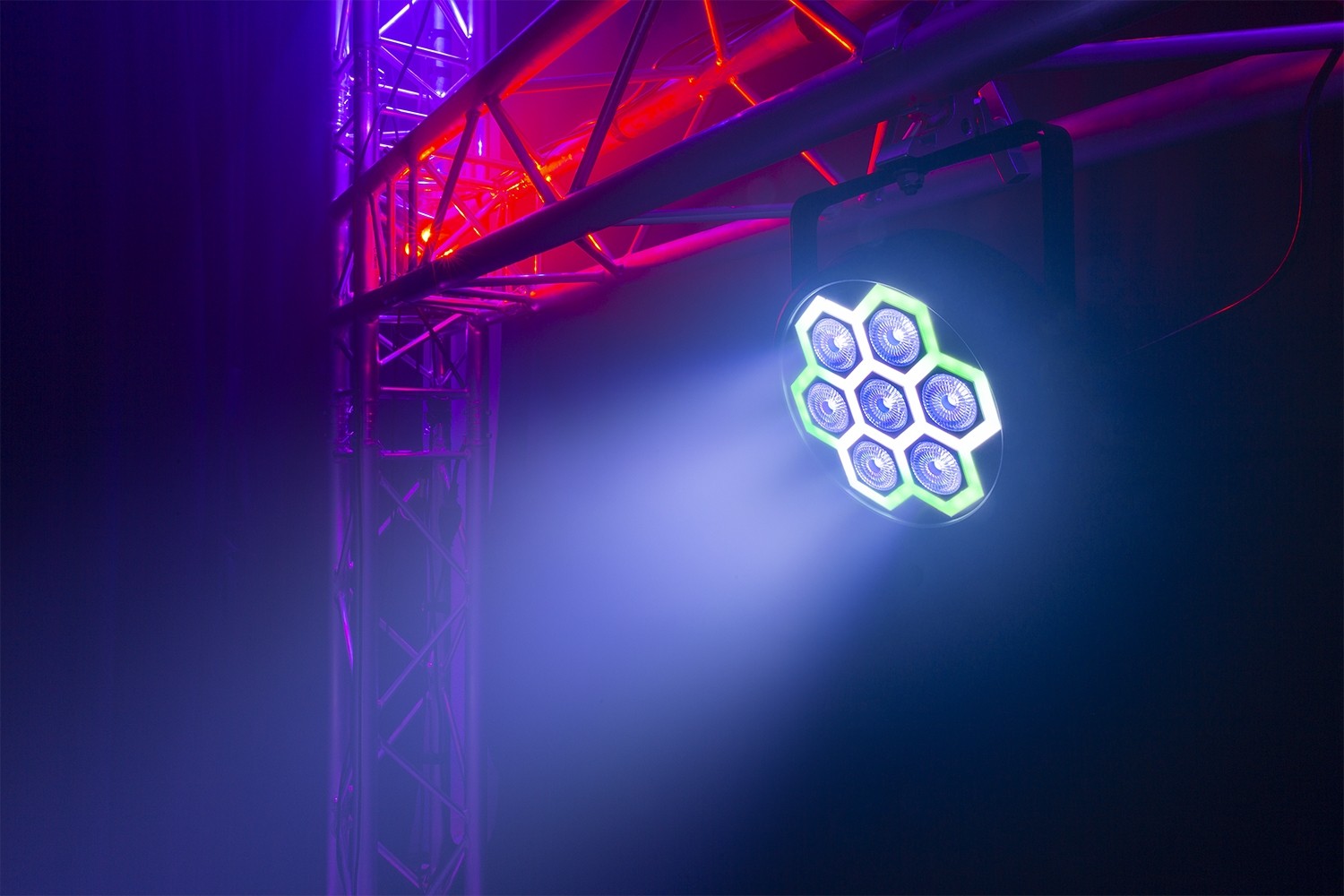 BeamZ – BT420 – FOCO PAR LIGERO 7X 10W + EFECTO COMBI SMD, 7x 10W 4-en-1 LEDs y 60x LEDs RGB SMD Mezcla de color RGBW con control de saturación de color