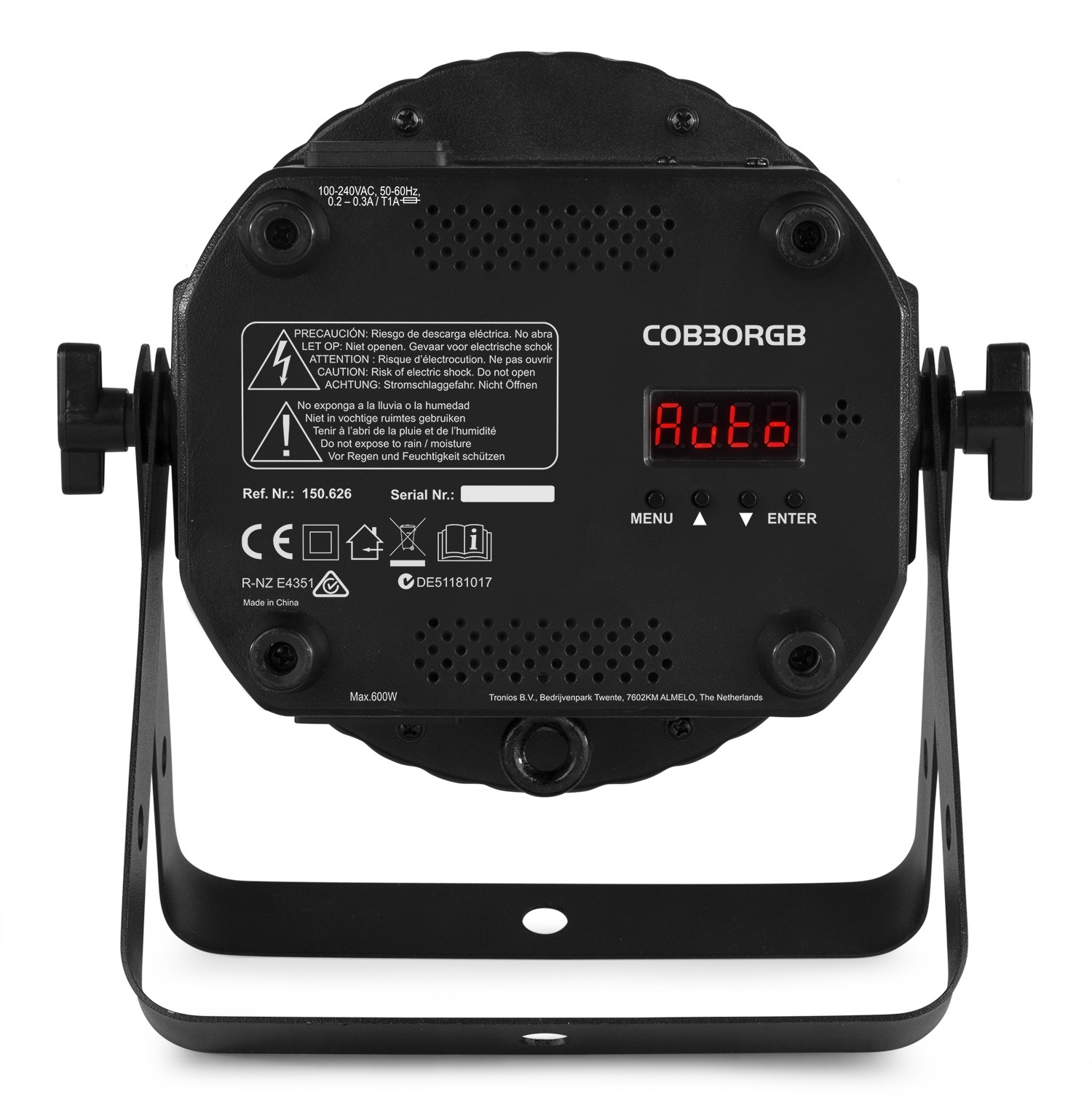 Cód. 150.626 BeamZ – COB30RGB – FLATPAR, PAR equipado con LED de alta potencia 30W COB (chip-on-board) con un ángulo de apertura de 30 grados Descripción El COB30RGB es un foco plano PAR equipado con LED de alta potencia 30W COB (chip-on-board) con un ángulo de apertura de 30°. La unidad ofrece gran cantidad de colores estáticos, así como mezcla de color. Incorpora programas automáticos y activados por sonido, estrobo y dimmer electrónico para usar en autónomo o crear tus propios efectos con 8 canales DMX. El mando a distancia por infrarrojos simplifica las operaciones y elimina el trabajo de…