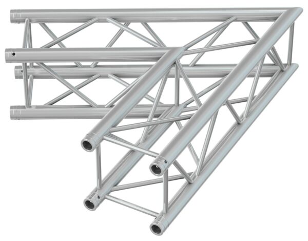 NUEVO Cód. 182.330 BEAMZ – P30-C20 – TRUSS CUADRADO, CORNER 60º , 2 VIAS, Aluminio color plata, Fabricado en Europa, Certificado TÜV DESCRIPCIÓN Truss cuadrado de aluminio Rapido y facil ensamblaje Ligero Sistema de acoplamiento P30 no incluido Fabricado en Europa Certificado TÜV