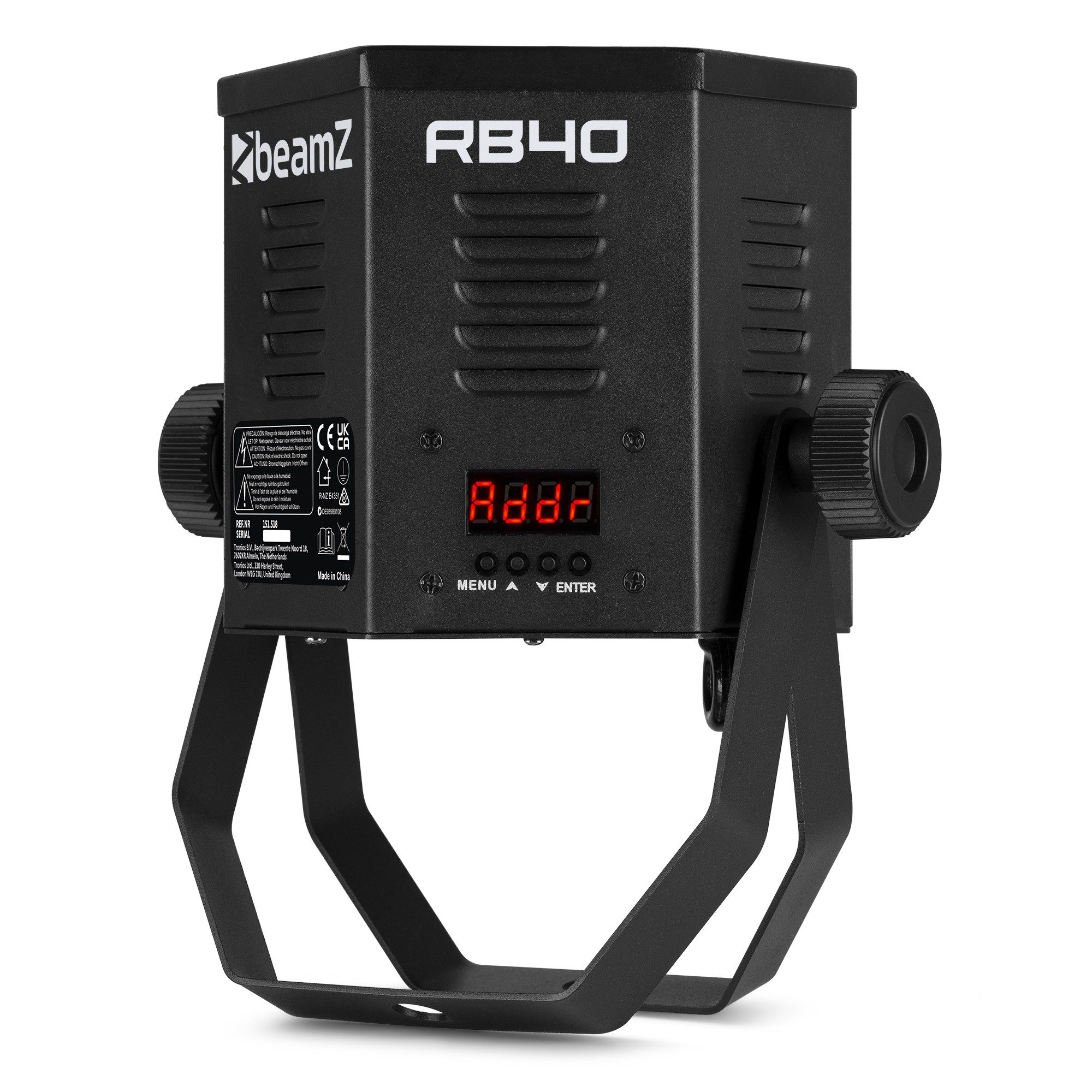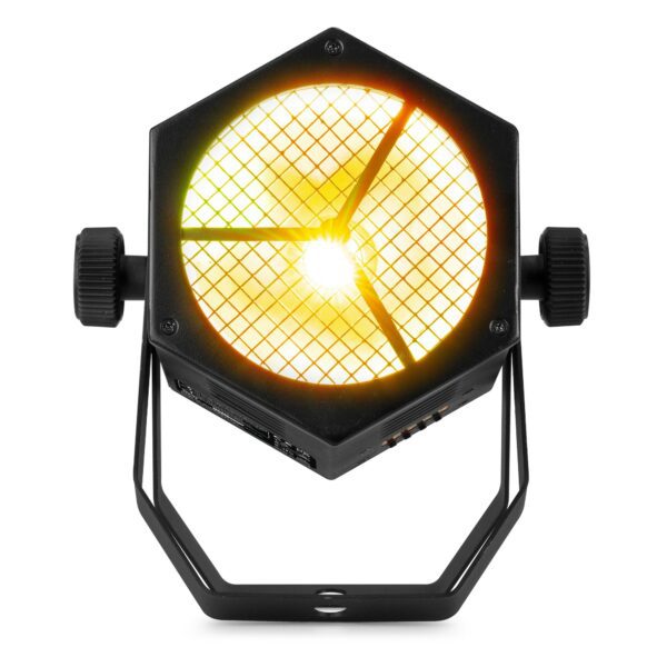 Cód. 151.518 BeamZ – Par COB retro RB40 – Retro Par con LED COB de alta potencia ¡Combina la tendencia retro con la moderna tecnología LED COB! El RB40 es un PAR de metal resistente equipado con un LED COB (chip integrado) de alta potencia de 40 W y crea un ángulo de haz de 75°. El dispositivo ofrece una magnitud de colores RGBW estáticos y mezcla de colores. Cuenta con programas integrados automatizados y activados por sonido, luz estroboscópica y atenuación electrónica para usar sobre la marcha, o crea tu propia apariencia usando el modo DMX. Posibilidad de vincular…