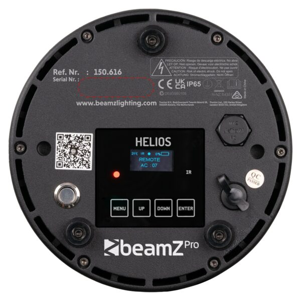 Cód. 150.616 BeamZ Pro – Helios – Kit de iluminación ascendente multifuncional para exteriores El kit Helios es un conjunto compuesto por una unidad de iluminación interior/exterior con batería incorporada y, además de un anillo de acople para unidades de configuración decorativas, que incluyen una esfera y un efecto de tubo. Estos accesorios decorativos se pueden montar fácilmente en el uplight mediante un cierre magnético. El uplight está equipado con 6 LED RGBWA-UV de alta eficiencia de 15 W para crear un espectro de colores brillante, intenso y potente, y se puede controlar a través de DMX inalámbrico o mediante…