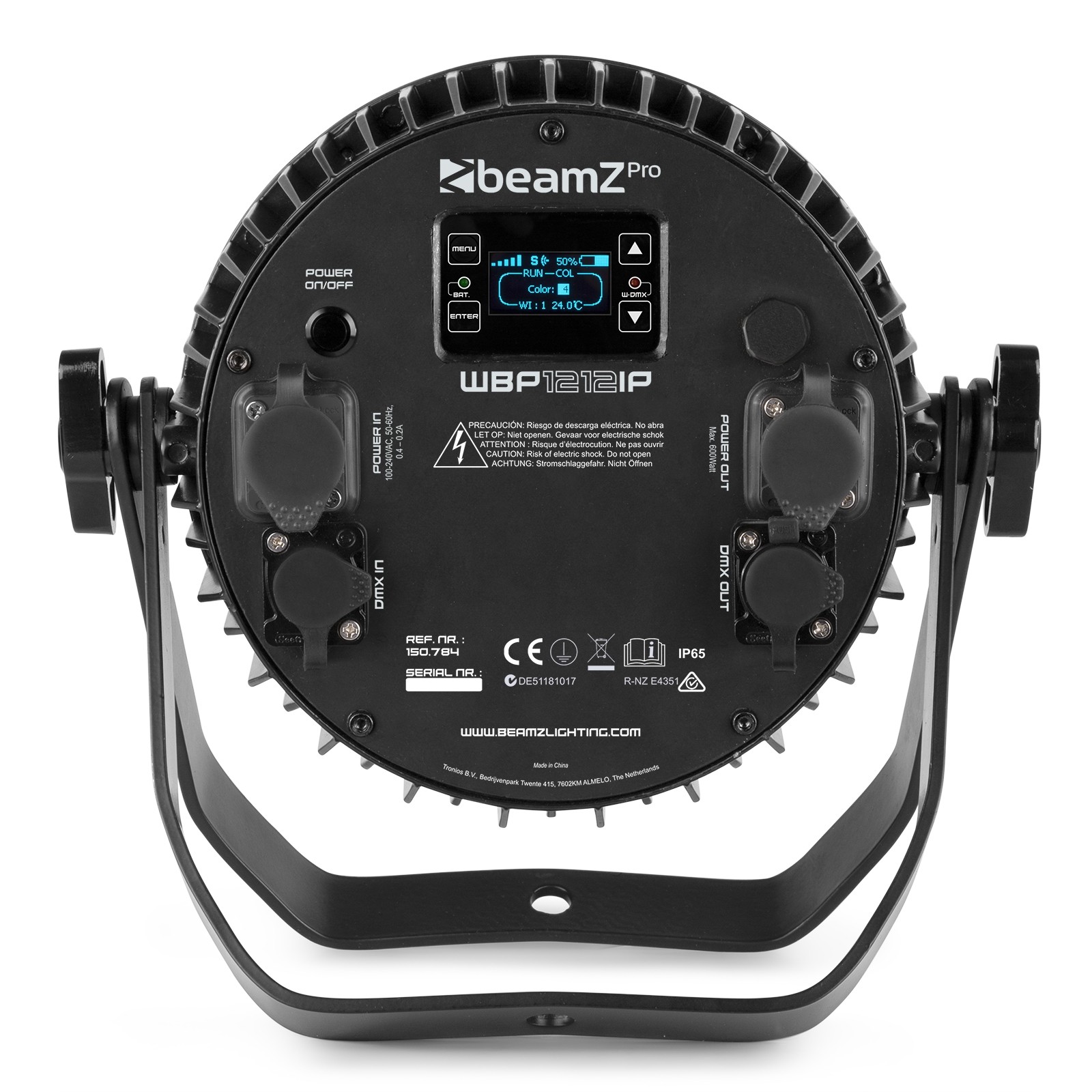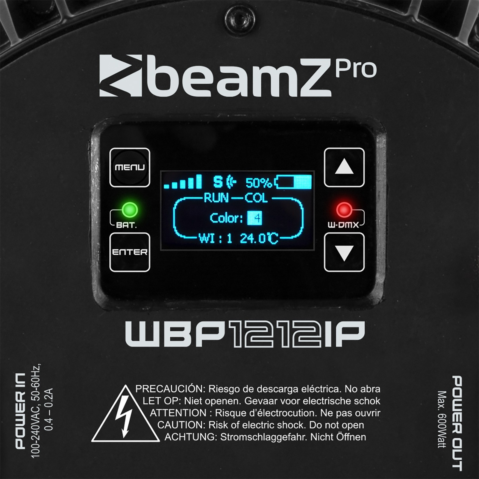 Pro Cód. 150.784 BeamZ Pro – WBP1212IP – FOCO PAR LED ALUMINIO IP65 CON BATERÍA 6-EN-1, 12 x 12 W. Mezcla de color RGBAW-UV Batería interna (hasta 20 horas operativa en color estático) Panel de control con display OLED Descripción El foco WBP912IP es un PAR en aluminio IP65 con batería interna específicamente diseñado para uso en exterior. Con 12 LEDs de alta potencia 6-en-1 dando 6 colores es el foco ideal para usar en cualquier evento interior o exterior. Este Par está diseñado para enriquecer las posibilidades wash y asegurar la perfecta convergencia de la luz. Resistente al agua…