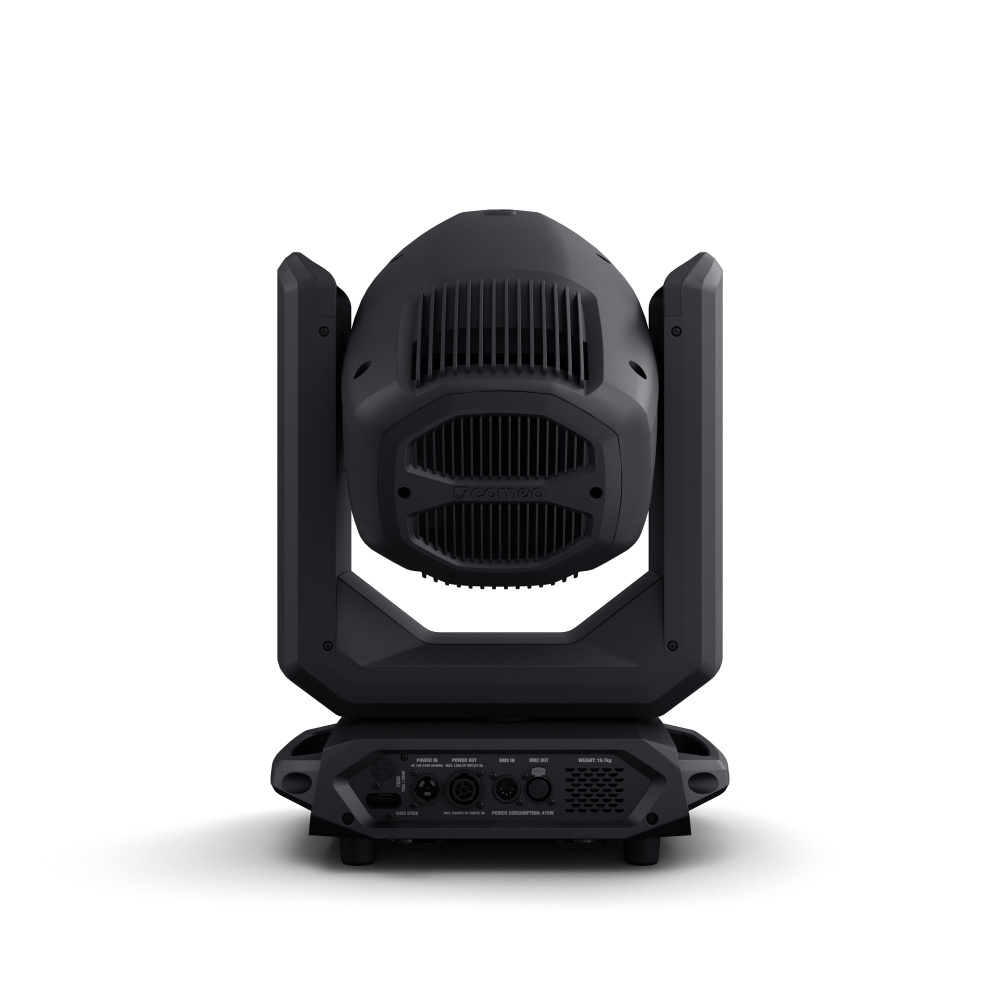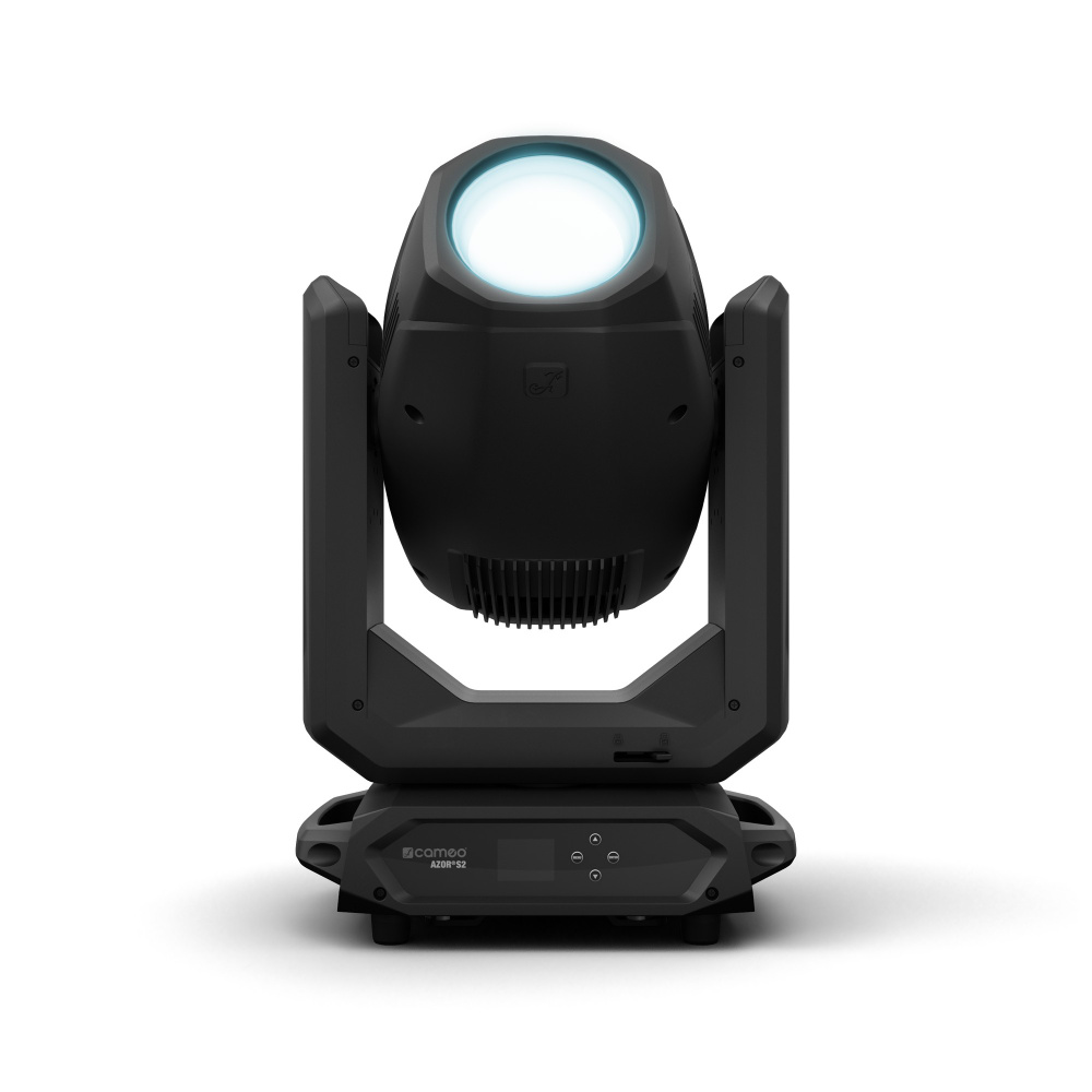 Cameo – AZOR® S2 – Cabeza móvil LED Spot, LED de 300 W con un flujo luminoso de 11.000 lm Rango de zoom: 5° – 50 Mezcla de colores CMY Rueda de color adicional con 8 filtros de color dicroicos Rueda de gobos giratoria con 8 gobos de vidrio indexables/rotativos e intercambiables + abierta Rueda de gobos estática con 11 gobos + abierta