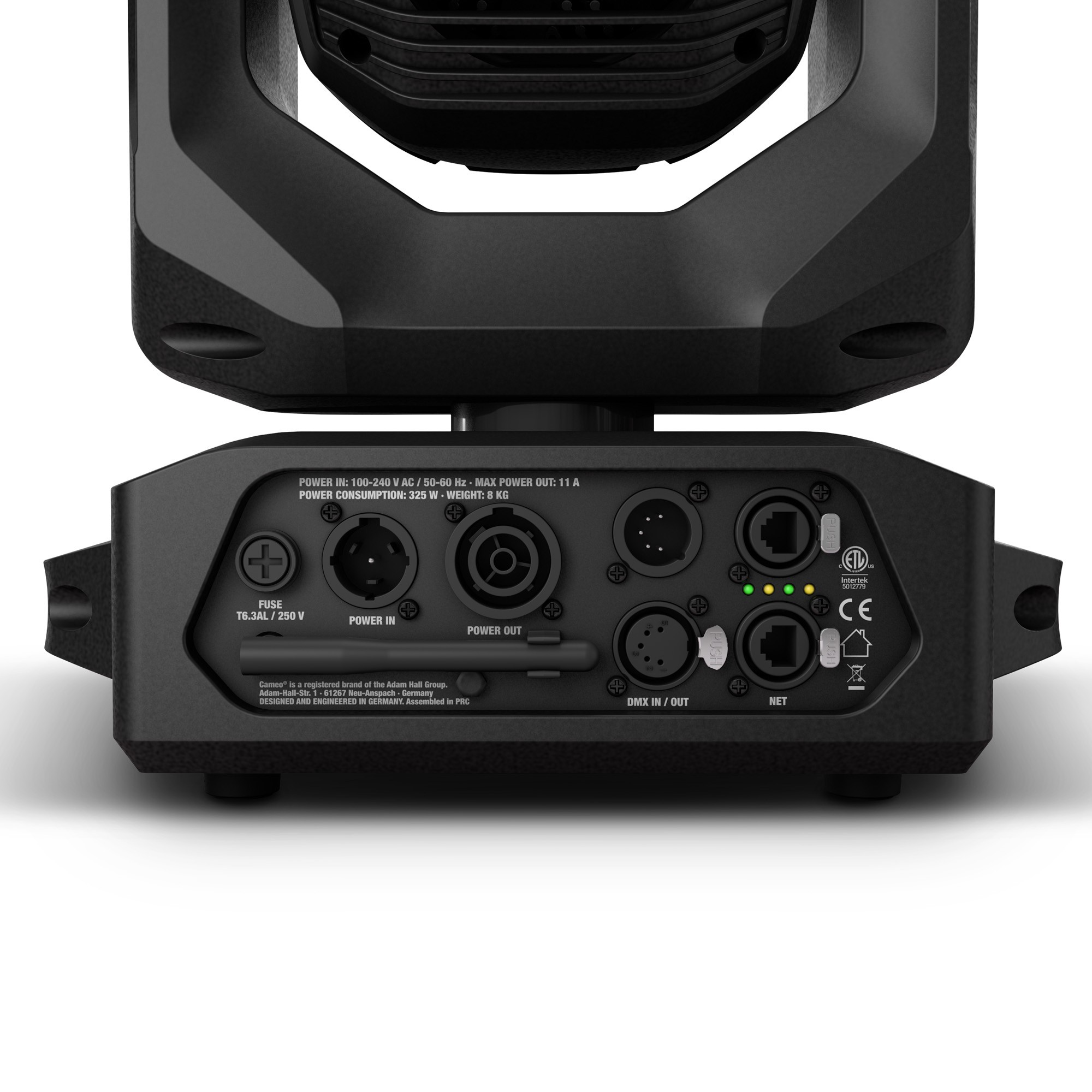 Al transmitir eventos en directo, esta cabeza móvil beam/washer garantiza una imagen de cámara sin parpadeos, ya que la frecuencia de refresco se puede ajustar en seis niveles entre 800 Hz y un máximo de 25 kHz. El control de software a través de la red se puede organizar de forma muy flexible con DMX512, RDM, Art-Net4, sACN, KlingNet o W-DMX. Es posible utilizar el equipo de forma autónoma y configurarlo con independencia de la red eléctrica a través del intuitivo mando giratorio con pantalla gráfica a batería. Los filtros de colores LEE preconfigurados permiten usar el equipo sin ningún problema junto con focos convencionales. La carcasa negra de plástico ABS, nailon y policarbonato, que son ignífugos y respetuosos con el medio ambiente, dispone de ventiladores controlados por temperatura y una conexión a la red eléctrica con conector Neutrik TrueOne y un cable de alimentación integrado de 1 m de longitud.