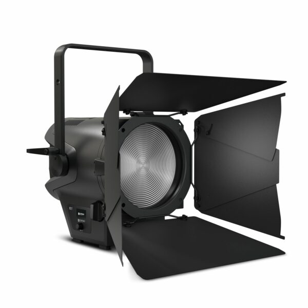 El F2 D dispone de 6 modos de control DMX, una función de estrobo rápido y 4 curvas de atenuación con resolución de 16 bits y respuesta ajustable. Las seis frecuencias seleccionables de modulación por ancho de pulso, hasta 25 kHz, garantizan que no se produzcan parpadeos, mientras que la eficiente refrigeración de los caloductos y el ventilador controlado por temperatura permiten un funcionamiento óptimo. La robusta carcasa de fundición de aluminio está equipada con un control giratorio y una pantalla OLED para configurar el foco fácilmente, mientras que las conexiones DMX de 5 pines y los conectores de red Power Twist permiten conectar focos en serie sin problemas. Se suministra con una visera de 8 hojas, un portafiltro y el cable de red.