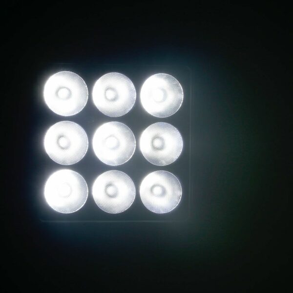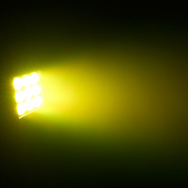 El FLOOD 600 IP65 de Cameo es un proyector refrigerado por convección perteneciente a la serie FLAT PRO de equipos compactos para uso en exteriores. Está equipado con 9 LED 6 en 1 de 12 W que ofrecen intensos colores RGBWA, unos suaves tonos pastel y unos intensos efectos de luz UV. Este foco, con grado de protección IP65 y ángulo de dispersión de 40°, está refrigerado por convección y funciona sin ningún parpadeo gracias a su frecuencia de refresco de 3000 Hz. La robusta carcasa metálica del FLOOD 600 IP65 de Cameo está provista de conectores roscados para la señal DMX y la alimentación eléctrica y de una pantalla retroiluminada con cuatro botones que permiten realizar ajustes fácilmente. Una función de bloqueo impide el acceso no autorizado al menú de ajustes. El proyector cuenta con 6 modos de control DMX y puede funcionar en los modos maestro, esclavo o autónomo. El FLOOD 600 IP65 funciona con una tensión entre 100 y 240 voltios y se suministra con un soporte en omega universal que ofrece varias opciones de montaje. Dispone de una visera de 4 hojas como accesorio opcional.