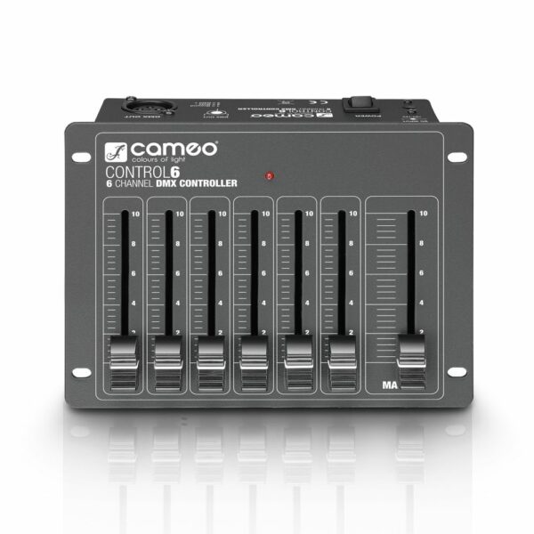 Cód. CLCONTROL6 Cameo CL CONTROL 6 – Controlador Mezclador DMX, de 6 canales El cameo CL CONTROL6 es un todo compacto controlador DMX de 6 canales que es perfecto para el control de sistemas de iluminación pequeños. Se puede montar de muchas maneras y, por supuesto, también se puede utilizar como una unidad independiente; es extremadamente fácil de operar. El CL CONTROL6 tiene 6 faders sin problemas cambiantes de los canales individuales DMX y un control del volumen maestro .Puede ser alimentado mediante el adaptador de corriente externo incluido o baterías y por lo tanto es universalmente utilizable para el…