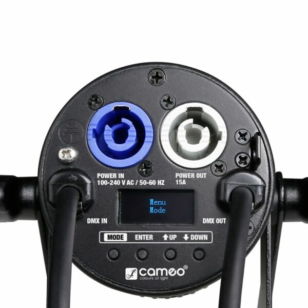 Disponible en acabado negro o blanco, el Q-Spot 15 W de Cameo es un foco PAR compacto que es compatible con RDM y se suministra con 3 difusores para conseguir ángulos de haz de 4,5°, 10° y 25°. Provisto de un potente LED blanco cálido de 15 W, la tecnología de 16 bits permite obtener una atenuación muy suave. Con una frecuencia de refresco de 3600 Hz y un funcionamiento sin parpadeo, el Q-Spot es ideal para platós de cine y televisión. Además, es totalmente silencioso gracias a una refrigeración por convección muy eficaz. El Q-Spot 15 dispone de 3 modos DMX, control por sonido, capacidad para funcionar como maestro, esclavo y autónomo, y un mando a distancia por infrarrojos para controlar el equipo cómodamente. Dispone de 4 curvas de atenuación de gran definición, cuya respuesta se puede ajustar para que el foco reaccione como una lámpara halógena, de un estrobo rápido y de unapantalla OLED con 4 botones que permiten una configuración intuitiva. La carcasa metálica dispone de conectores de entrada y salida de 3 pines para la señal DMX y azul y blanco para la alimentación eléctrica, lo que permite conectar varios focos en cadena.