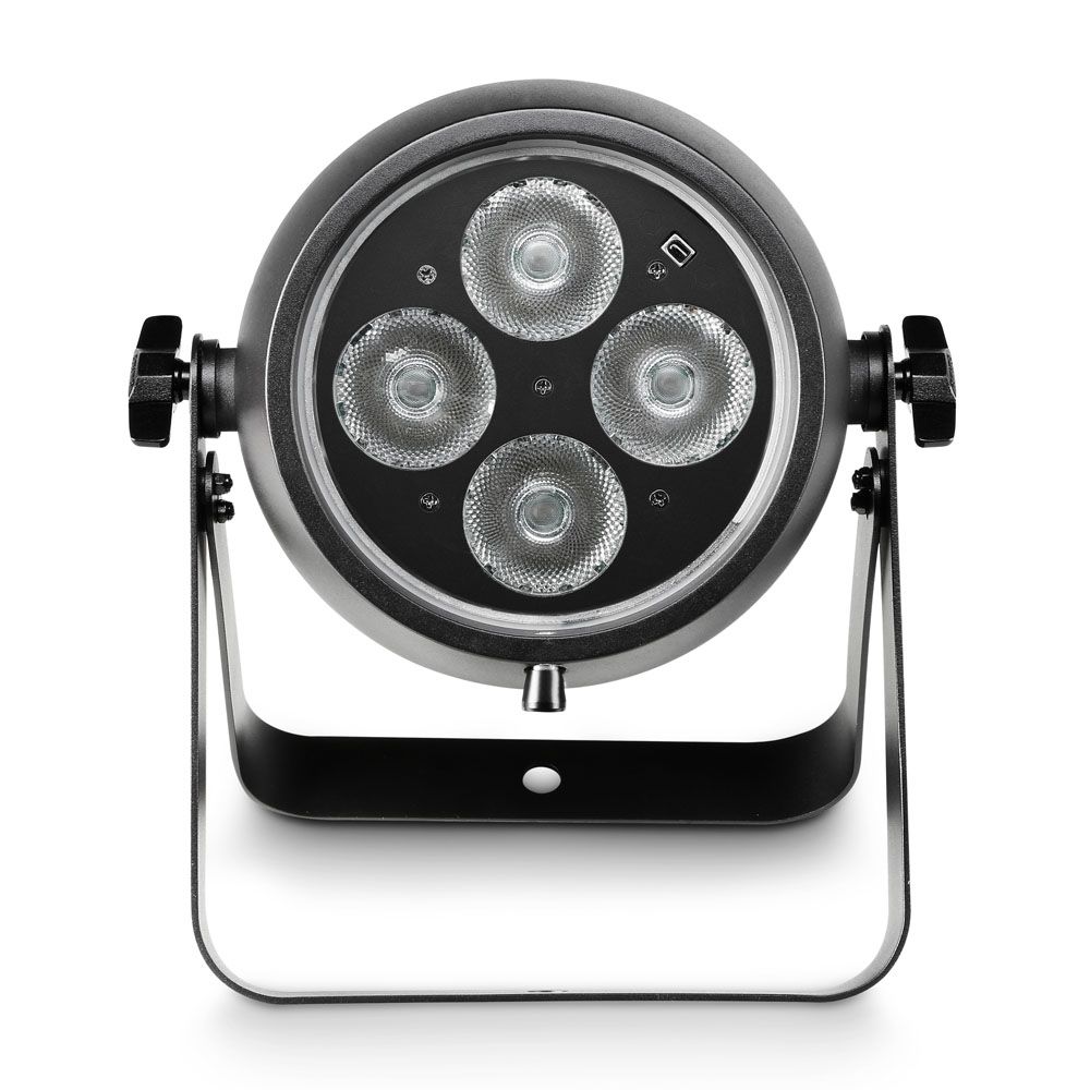 El Zenit® P130 de Cameo es un foco PAR para uso en exteriores, con clase de protección IP65 y un ángulo de dispersión preciso y muy estrecho de 8°. Sus dos difusores especialmente diseñados ofrecen dos opciones de dispersión de 25° o 45° con una iluminación uniforme. El Zenit® P130 está equipado con 4 LED RGBW de 32 W de marca Osram que generan colores luminosos y uniformes; su tecnología de 16 bits garantiza una alta resolución al mezclar y atenuar colores. El foco PAR profesional funciona sin parpadeo gracias a su frecuencia de refresco de 3600 Hz, por lo que es ideal para cine y TV. La refrigeración por convección, además de ser efectiva, garantiza un funcionamiento silencioso. El Zenit® P130 incorpora los últimos avances tecnológicos: es compatible con RDM y ofrece 7 modos de control DMX, programas de control automático espectaculares y la posibilidad de funcionar en los modos maestro, esclavo o autónomo. Incluye, entre otras características, la corrección de la temperatura de color y de cada color LED individual, una función estrobo muy rápida, 4 curvas de atenuación ajustables y la simulación de la atenuación de una lámpara halógena. Una función de bloqueo impide el acceso no autorizado al menú de ajustes. Para poder conectar varios equipos en cadena, el foco dispone de una moderna y robusta carcasa de aluminio de fundición, conectores de entrada y salida DMX de 5 pines y de alimentación con bloqueo. Una pantalla OLED moderna con 4 botones táctiles permiten ajustar el Zenit® P130 de manera sencilla e intuitiva.