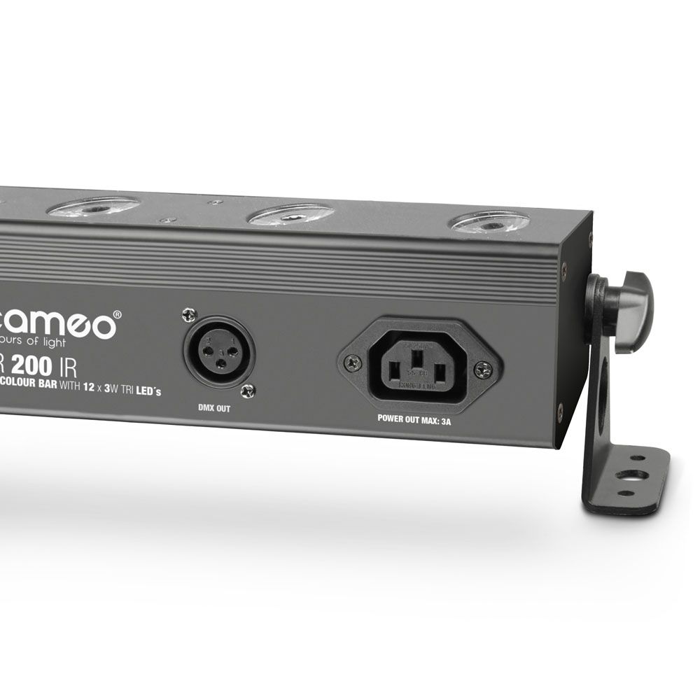 Con sus 12 LEDs tricolor ultrabrillantes de 3 W, un funcionamiento totalmente silencioso gracias a la refrigeración por convección y 5 modos DMX, la barra TriBar 200 IR de Cameo es ideal para todo tipo de aplicaciones. Los LEDs se pueden controlar individualmente en bloques de cuatro. La barra RGB con un ángulo de dispersión de 20° también puede funcionar en los modos autónomo, maestro o esclavo, cuenta con 12 programas automáticos y un micrófono integrado para activar el equipo con el sonido ambiente. La TriBar 200 IR de Cameo tiene una pantalla retroiluminada con 4 botones de función y un práctico mando a distancia por infrarrojos para realizar los ajustes fácilmente. La robusta carcasa metálica con unos soportes de montaje universales ajustables está equipada con conectores DMX de 3 pines y conectores IEC para conectar varios equipos en serie, y su consumo es de tan solo 50 W. La barra TriBar 200 IR de Cameo está disponible en negro y en blanco.