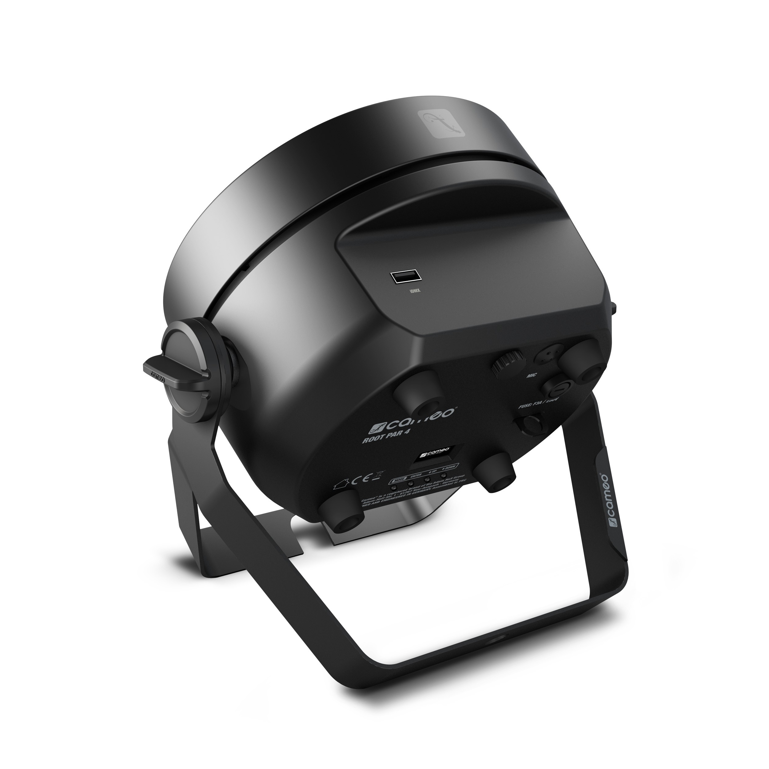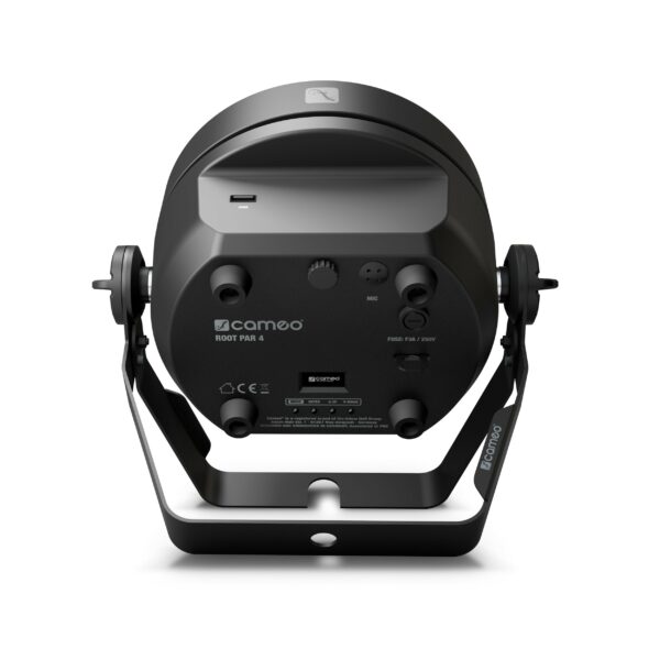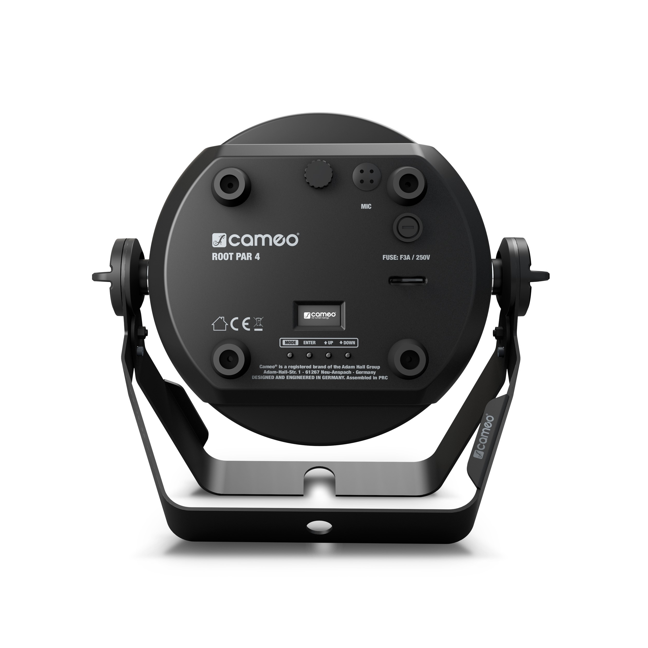 Este foco PAR con 7 LED de cuatro colores y 4 W tiene una potencia luminosa de 1350 lm, ideal para músicos, DJ y empresas de alquiler de equipos. El ROOT PAR 4 de Cameo no solo permite crear excelentes mezclas de colores RGBW, sino que también ofrece una gran flexibilidad para generar varios tonos de blanco. Para ello, los colores y los ajustes se configuran muy fácilmente a través de los cuatro botones y la pantalla OLED, sin necesidad de mando a distancia. El equipo se controla por DMX, como maestro/esclavo o en modo autónomo, y se sincroniza con el sonido a través del micrófono integrado. Opcionalmente se puede adquirir un mando a distancia por infrarrojos como accesorio (n.º art. CLP FLAT 1 REMOTE).