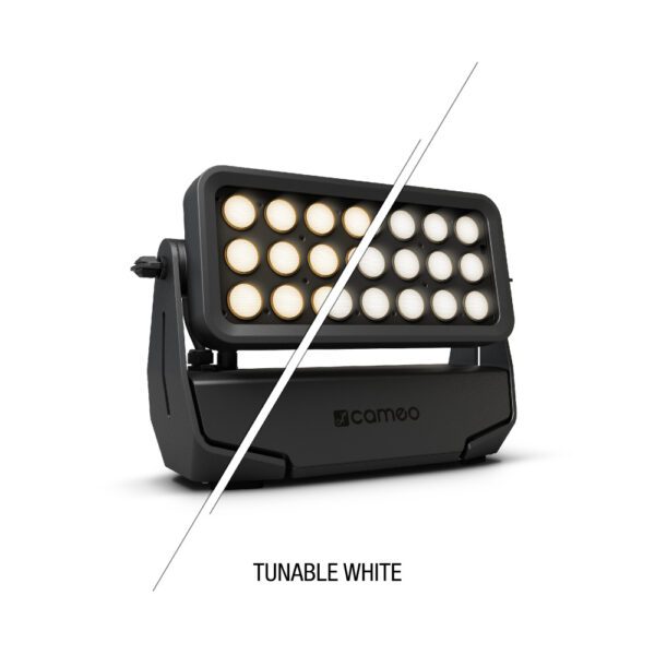 Equipada con un total de 21 LED blancos sintonizables de 12 W para una enorme potencia de 23.000 lm, la Cameo ZENIT® W300 TW es una potente luz de lavado con clasificación IP65 para aplicaciones exigentes en exteriores. Además de la capacidad RDM y DMX estándar, incorpora un transceptor W-DMX™ de 2,4 GHz de Wireless Solution Sweden AB para un cómodo control inalámbrico.