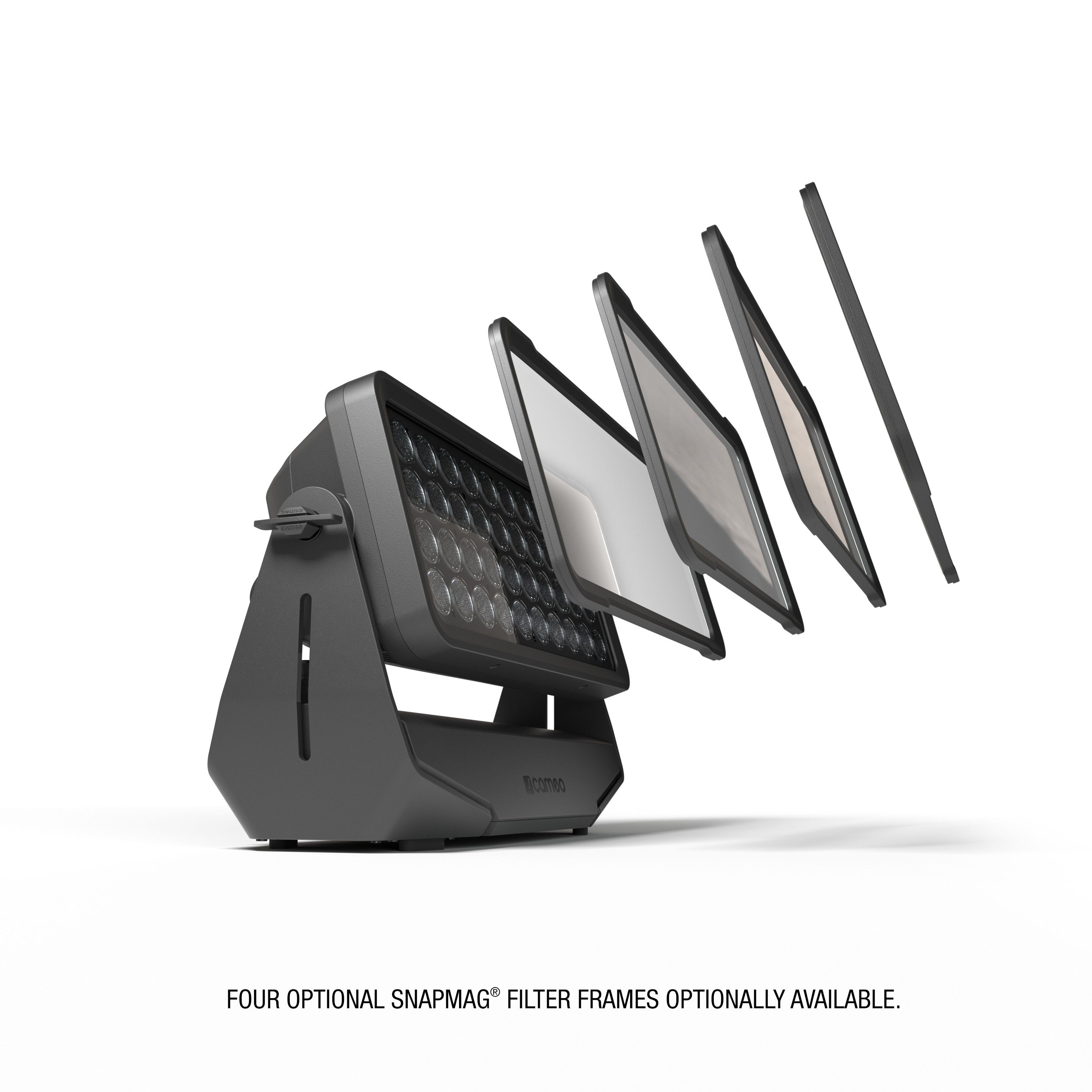 Para una máxima versatilidad, el ZENIT® W600 posee la innovadora tecnología SnapMag® de Cameo. Le permite agregar marcos de filtro en menos de un segundo sin necesidad de herramientas o desmontaje. Magnetic SnapMag® marcos con difusores de luz de precisión de conformación que proporciona una selección de 25 °, 45 °, 100 ° o de 60 ° x 10 ° ángulos de haz elíptica y una puerta de granero de 4 vías están disponibles como accesorios dedicados.