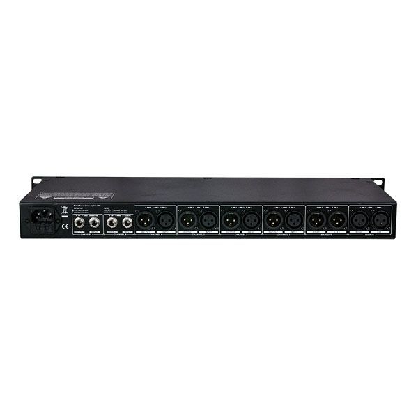 Controles: niveles de entrada, niveles de salida, conmutador de conexión principal, conmutador de balance, panorama, separación de masa
