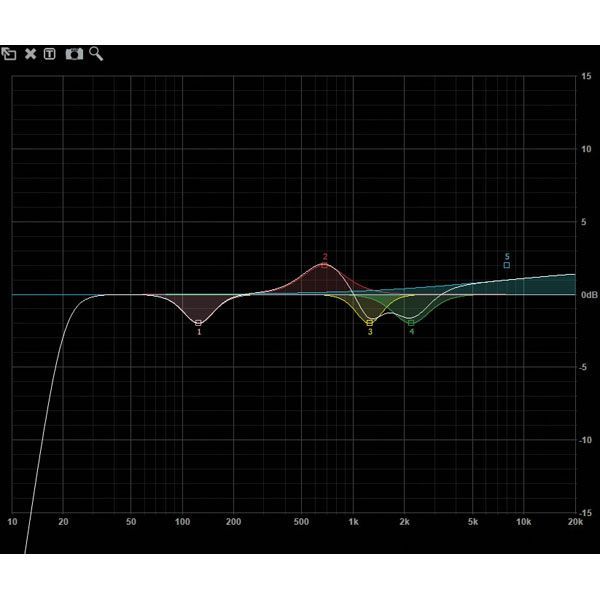 Tipo: Low Shelf (shelving bajo) 6, Low Shelf (shelving bajo) 12, High Shelf (shelving alto) 6 y High Shelf (shelving alto) 12Divisores de frecuencias: